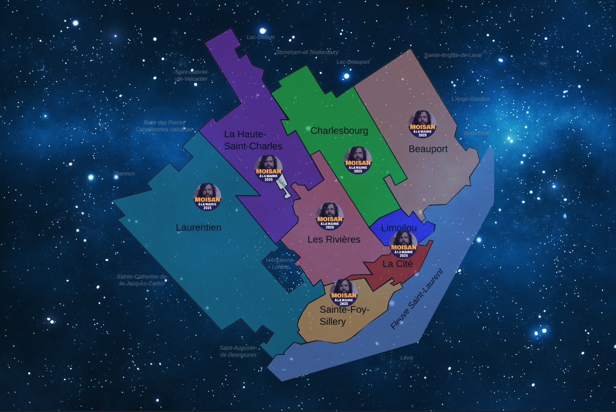 Voyant son quartier Saint-Sacrement qui se meurt à petit feu et le projet de tramway qui va de l’avant sans aucune consultation citoyenne, Moisan a décidé de prendre la parole, de faire une prise de conscience citoyenne face à une ville polarisée par son leadership municipal. Son objectif est de sensibiliser la population à l’importance du vote car il s’agit de confier la responsabilité de la gestion de 2 milliards de dollars de taxes à des gens qui se voient élus par trop peu de citoyennes et citoyens (45% lors du dernier scrutin). Pourtant, les affaires municipales touchent l’ensemble de la population presque quotidiennement. Est-ce normal qu’on dépense des centaines de millions de dollars de votre argent sans même vous consulter?
